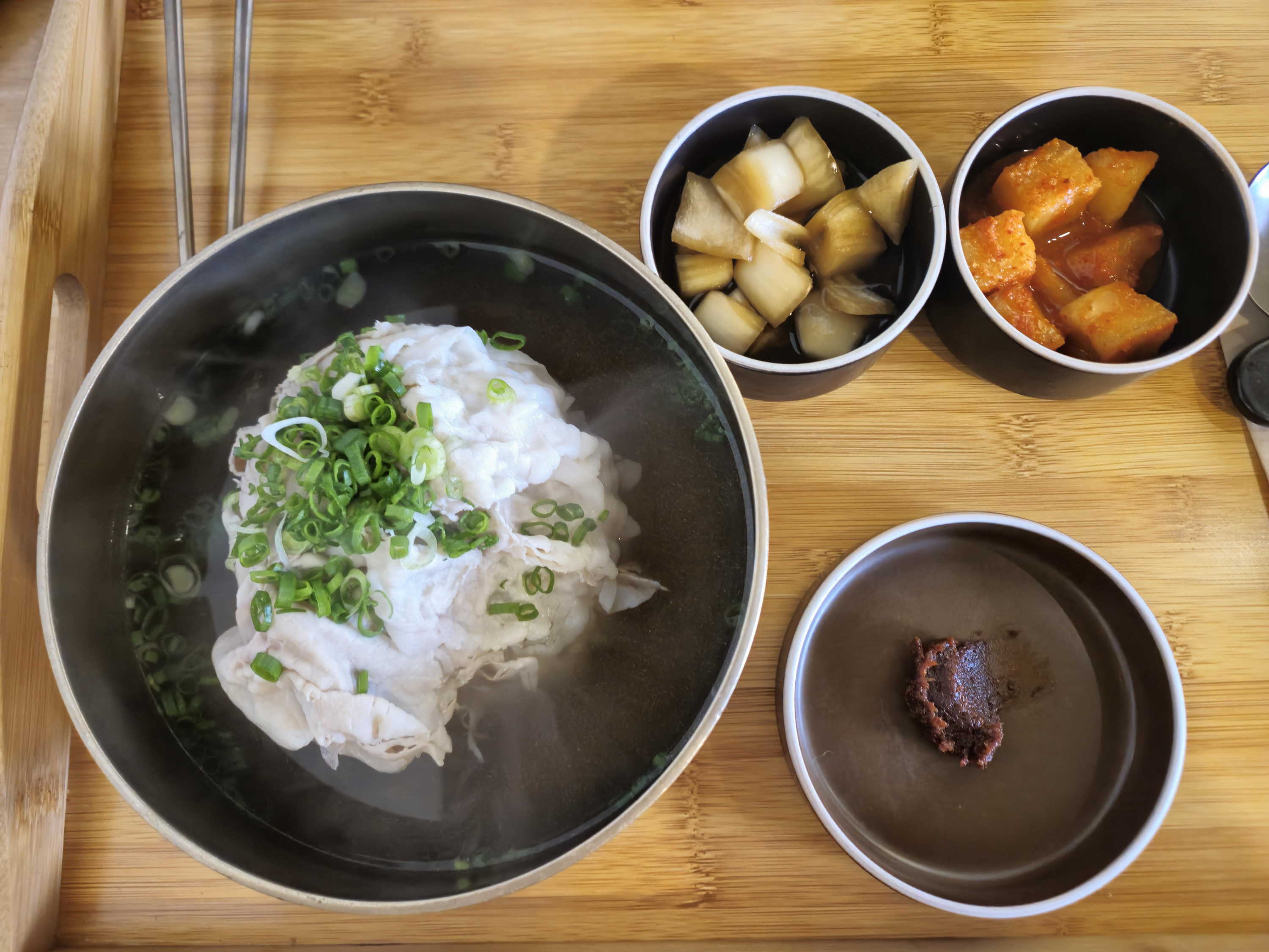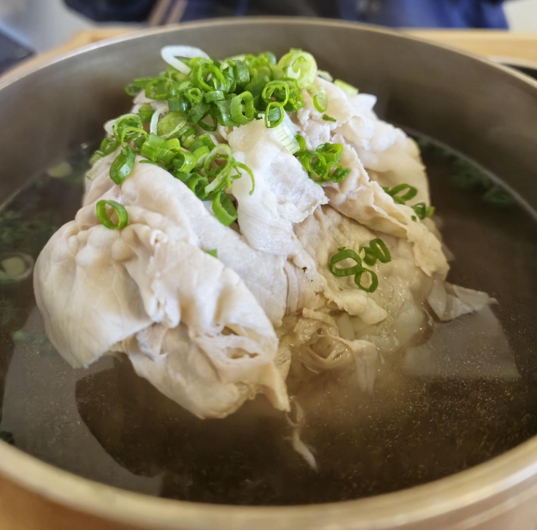 제주 흑돼지 특유의 깊고 깔끔한 맛을 제대로 느낄 수 있는 메뉴로, 국물은 맑고 고기는 아주 얇게 슬라이스 되어있어서 부드럽게 씹혀요.