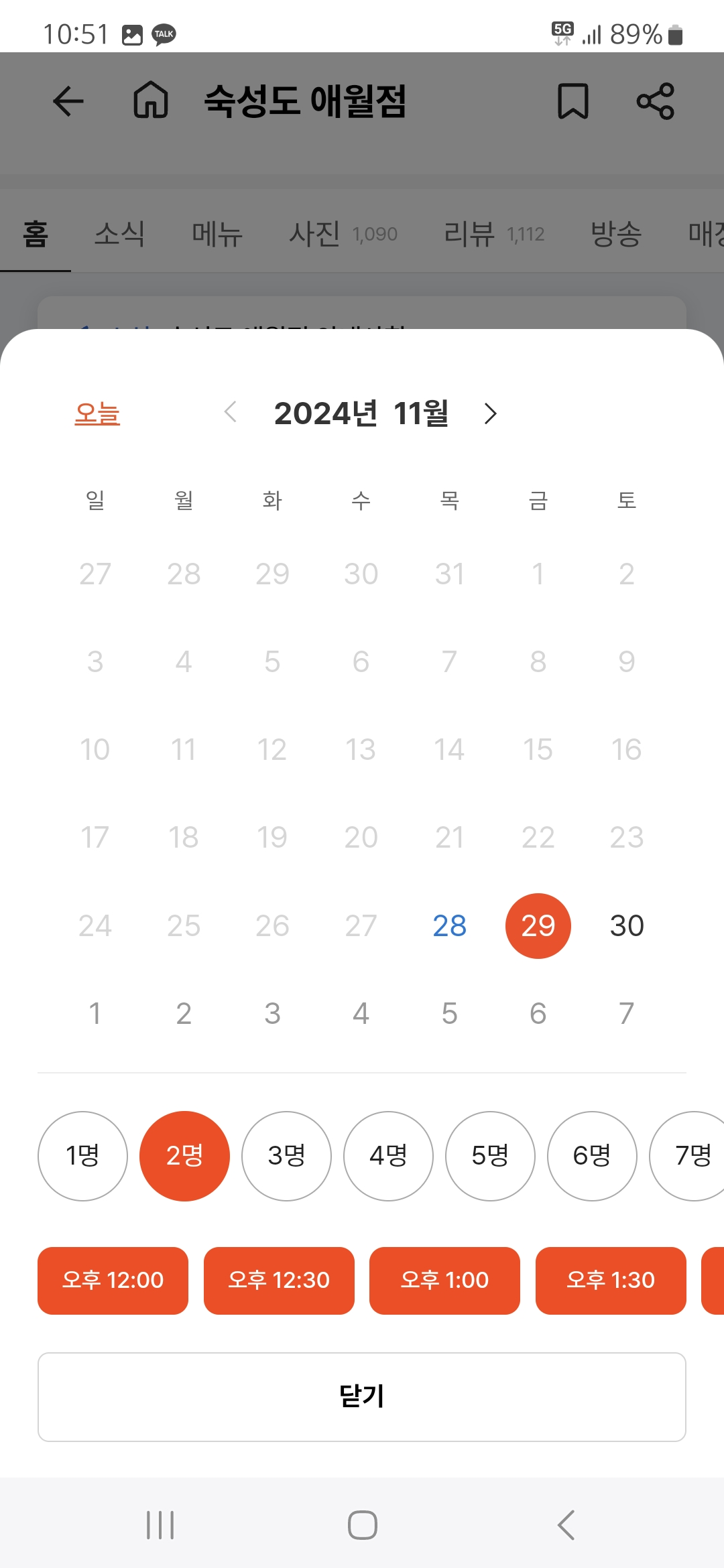 숙성도 애월점 기준으로 캐치테이블 확인하였을 때 다음과 같이 예약가능한 모습이고