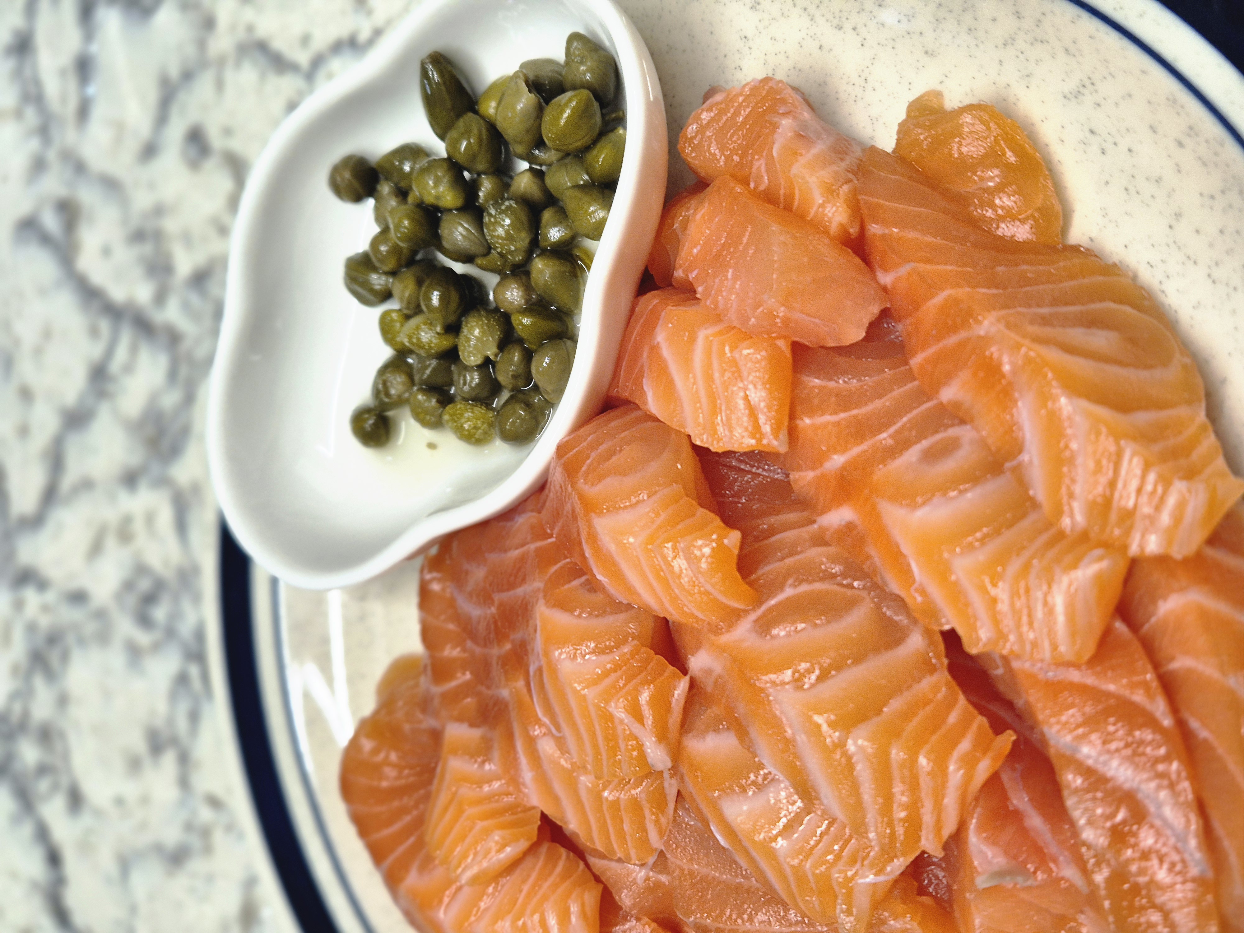 저는 연어에 양파 잔뜩올려 케이퍼와 먹어 줬어요.