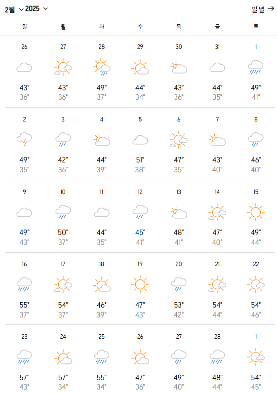 | 2025년 제주 3월 날씨 여행 여행 옷차림 추천 (0) | 2025.02.06 |