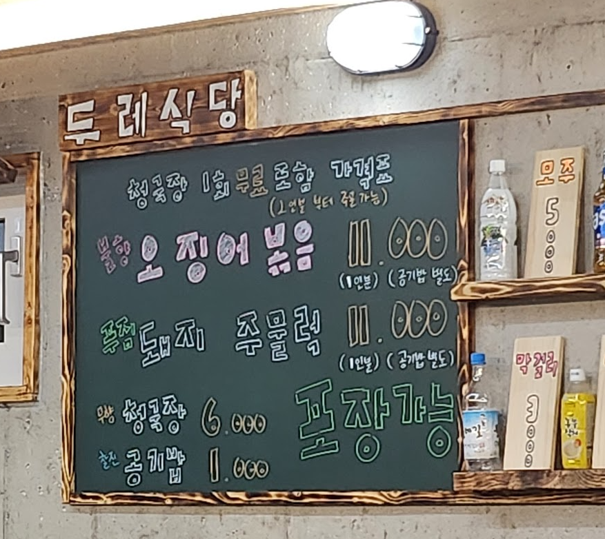 - 두레식당 : 현지인 맛집 추천!! 오징어볶음 맛집. 볶음밥 필수. 웨이팅 있을 수 있음.